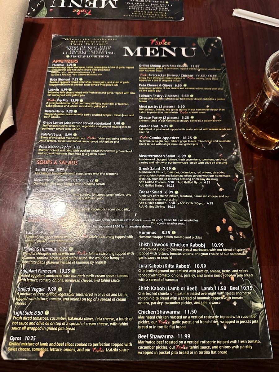 At 7Spice Grocery and Grill, the menu offers a casual yet thoughtfully curated blend of Mediterranean and Middle Eastern flavors. The dishes range from comforting staples like lentil soup and freshly baked pita bread to heartier items such as the spice mixed grill and chicken shawarma sandwich. Alongside savory options, you’ll find sweet treats like baklava and warbat bil ashta, perfect for a light finish to your meal.
